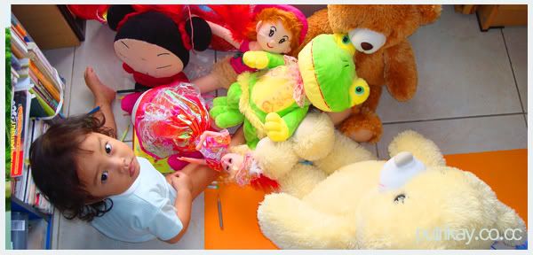 Sebenernya masih banyak lagi yang Kay pelajari dari nakalnya dia, kayak misal aja abis bangun tidur trus pipis, trus biasanya Kay langsung di cuekin ma ayah & enda dengan kesibukan paginya, Kay nggak bisa kalo nggak ke kamar depan yang banyak buku dan majalahnya, dan dalam 5 menit ... breng ... berantakan semua buku2nya, Ayah yakin banget kalo Kay suka banget sama buku. Apalagi yang ada gambar warna2ni ... wew, buka sana buka sini nggak selese2.